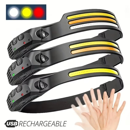 Sensor Headlamp COB LED Head Lamp Flashlight USB Rechargeable Head Torch 5 Lighting Modes Head Light with Built-In Battery